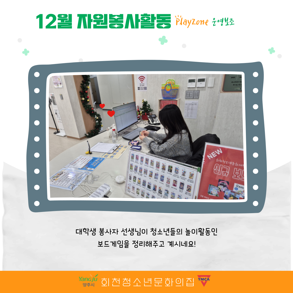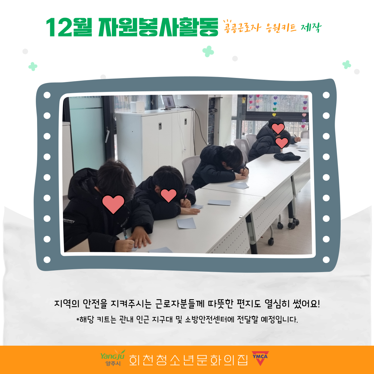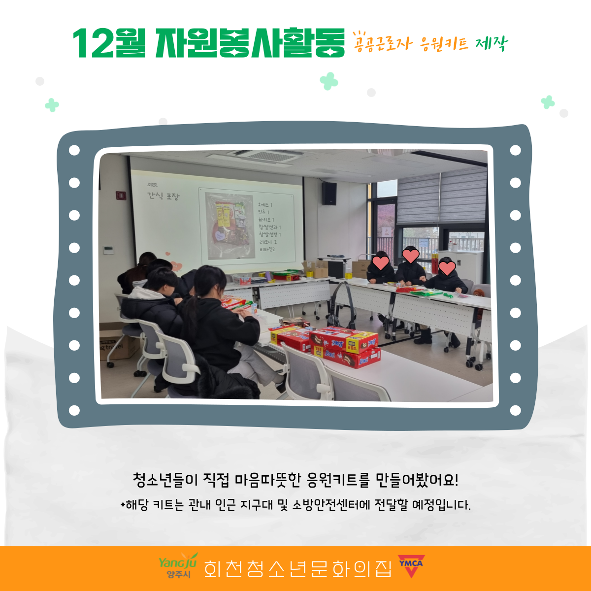 12월도 청소년들이 기관에서 자원봉사활동을 진행했어요.