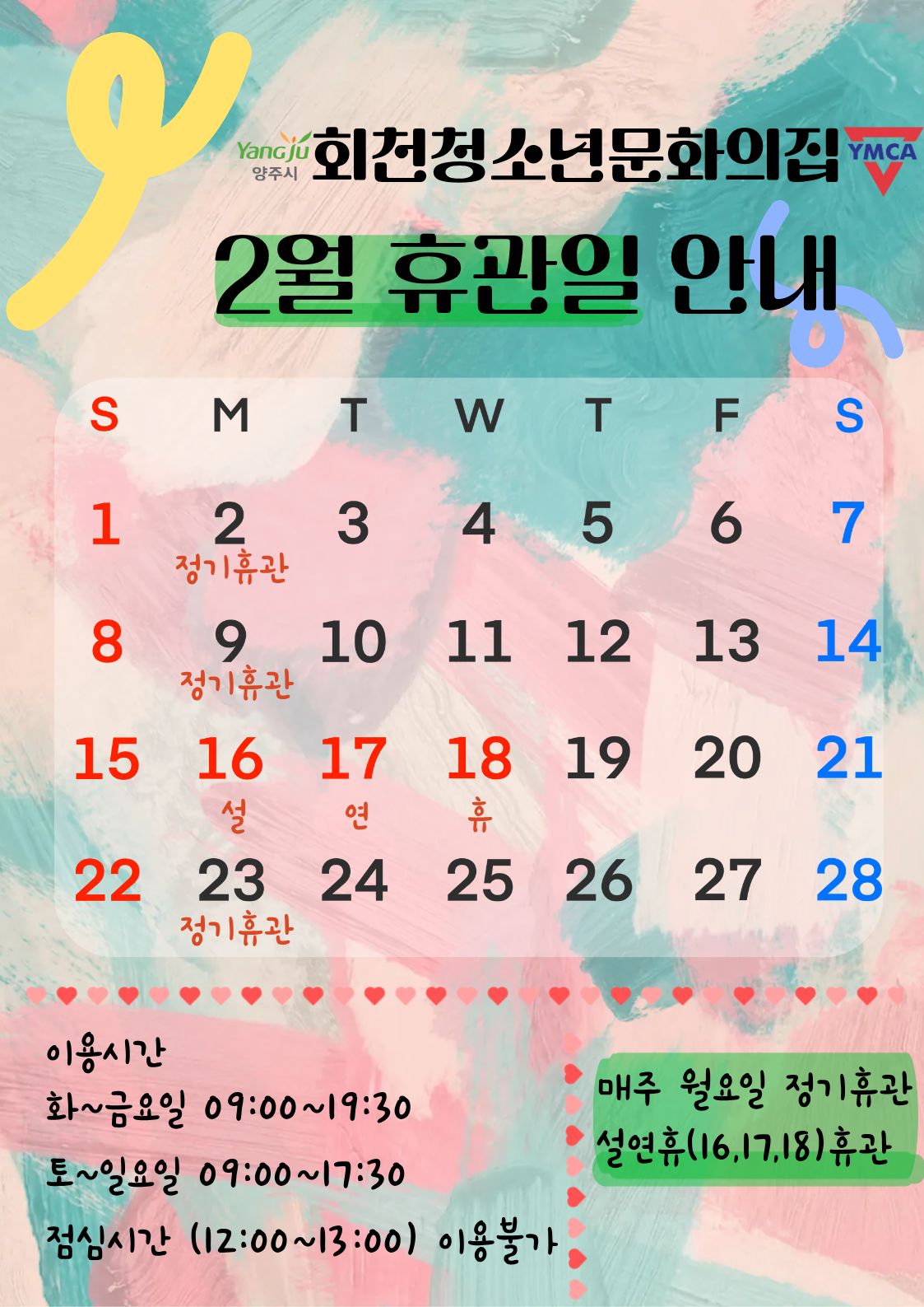 회천청소년문화의집 2월 휴관일 안내드립니다.