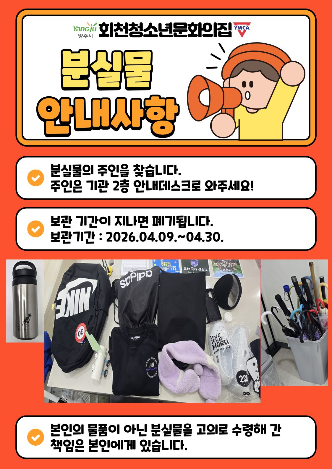회천청소년문화의집입니다. 회천청소년문화의집에서는발견된 분실물을 보관하고 있습니다.명시된 기간이 지나면폐기될 예정이오니분실물이 있으시다면확인해주시면 감사하겠습니다. #회천청소년문화의집 #분실물