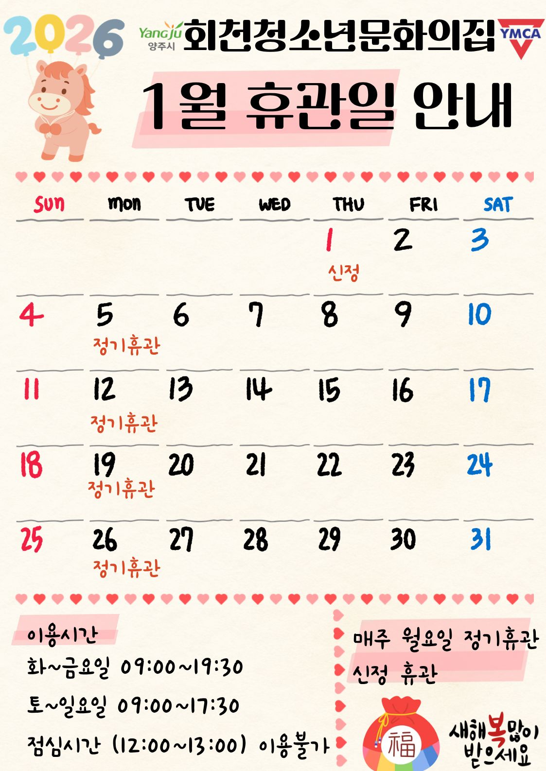 2026년 1월 휴관일 안내입니다.